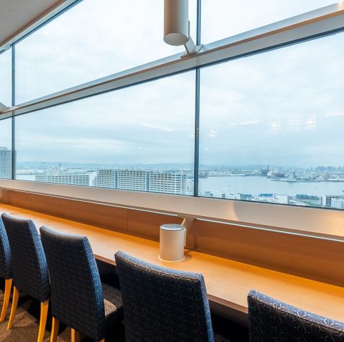 4名様用のテーブルを57席備えており、ご家族連れや女子会にも最適です。全面窓に面した32席のカウンターは、景色を独占できる特等席。デートや記念日にも大変おすすめです。窓際の一部席にはコンセントも完備しているため、お仕事合間のリフレッシュにも便利。あらゆるシーンに寄り添う開放的な空間で、至福の時を。